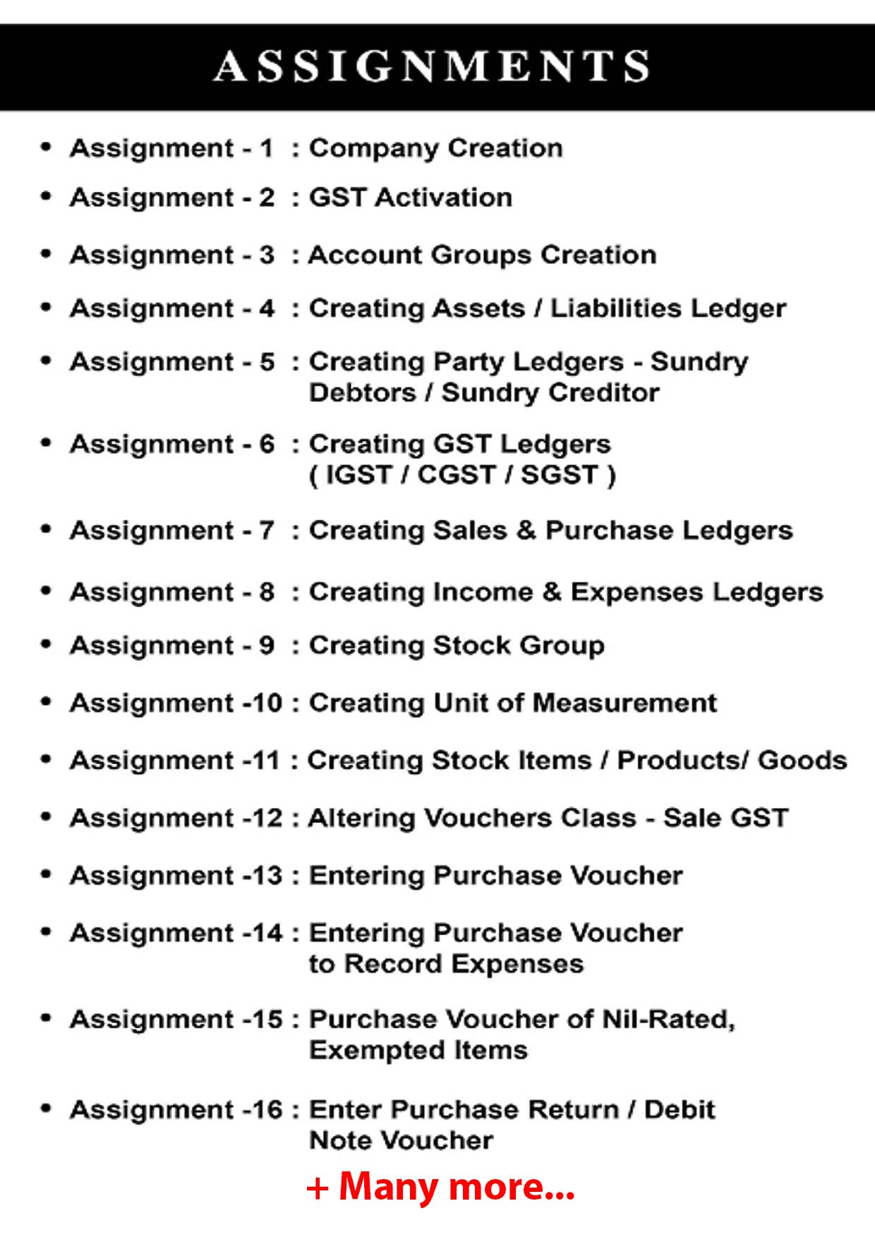 - Hand on Experience with Practical Assignments.